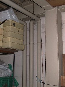 降った雨はトイで1ヶ所に集められて地下のタンクへ
